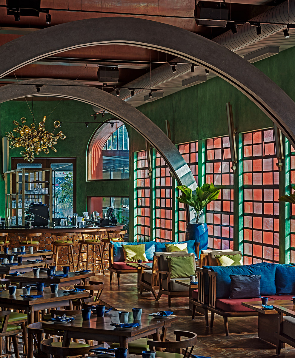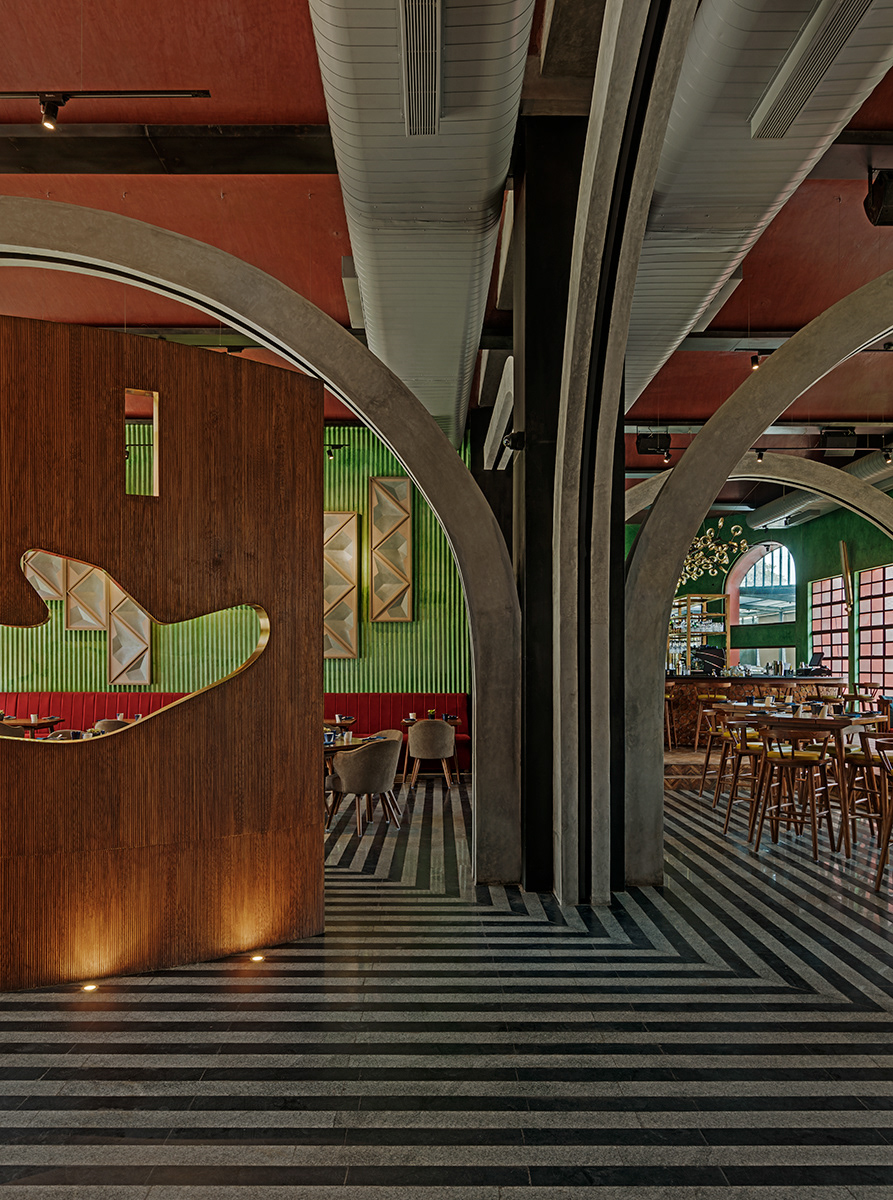 Designed By Khosla Associates Located in the Landmark Indian Express Building on Queens Road in Bengaluru, the name of this Bar, Restaurant and nightlife venue is derived from the Road number and pin code of its address; No.1 Queens Road, Bangalore 1