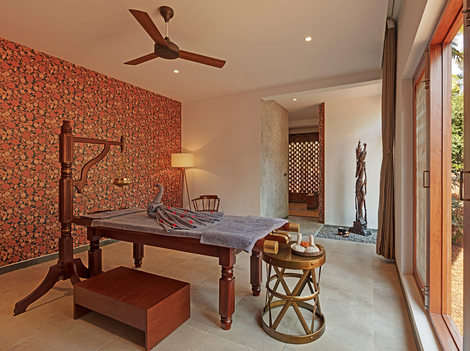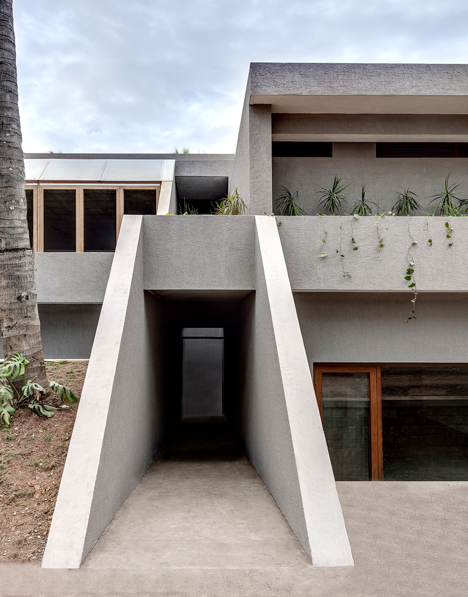 Designed as a ‘Retreat within Retreat’, the 20,000 Sqft spa block is a new ‘insert’ at an existing Yoga Retreat that offers spectacular layers of spaces and experiences. The Architectural Vision is planned as a sustainable model, focusing strongly on the connect of man in the realm of nature. The main block disappears into the earth and is half submerged to connect to the isolating quality of the earth, with the light and air movement planned from a series of sunken courts. The approach to the main area slowly opens up a plethora of spaces which are programmatically planned to suit the smooth spatial transitions of the guests.