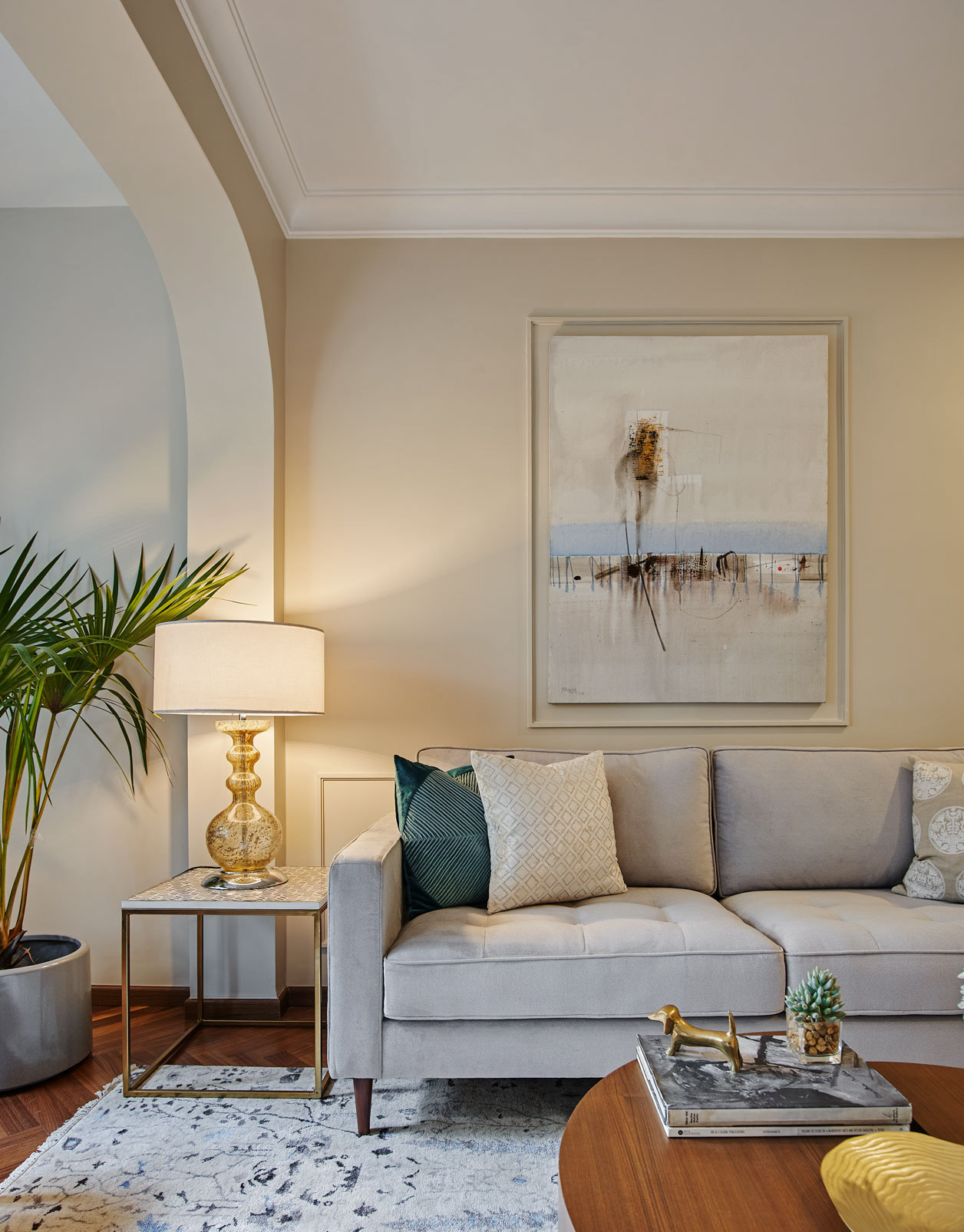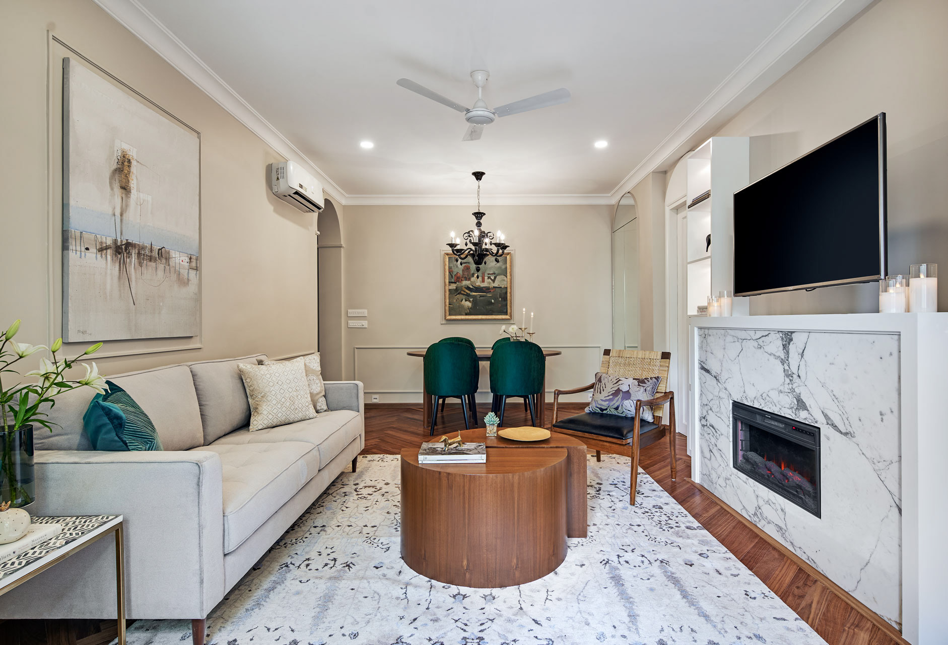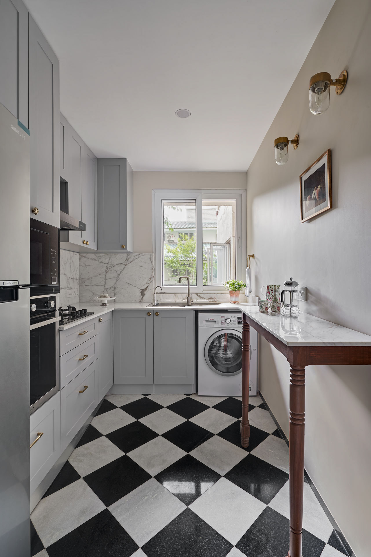 Designed By Weespace Interiors. There’s a certain beauty about this apartment, nestled amid lush greenery and located in the heart of downtown Bangalore. The spacious 2 BHK belongs to a young couple with a newborn and a pet dog. The couple had envisioned their home as a Victorian townhouse—which at the same time needed to be upbeat to match their urban lifestyle.