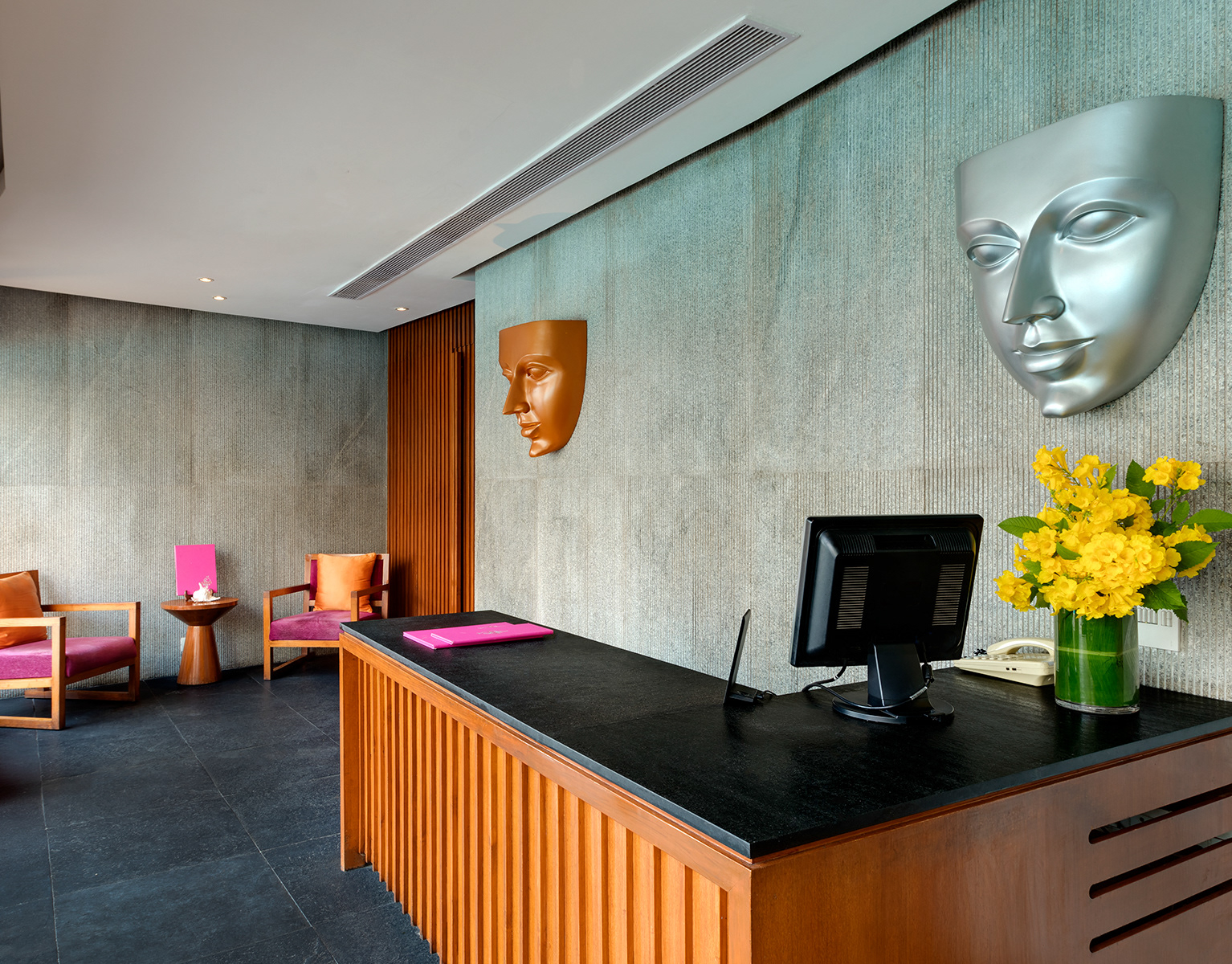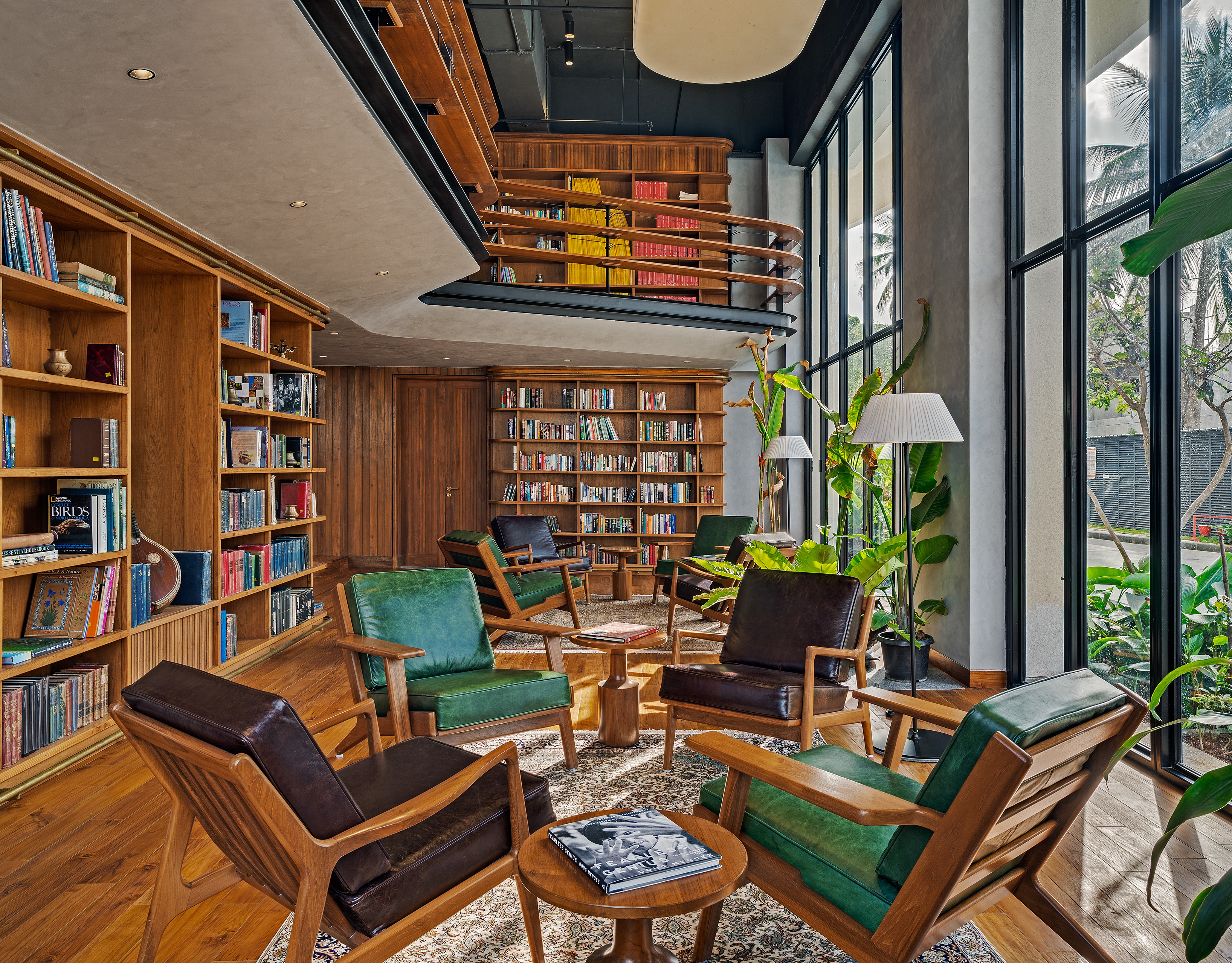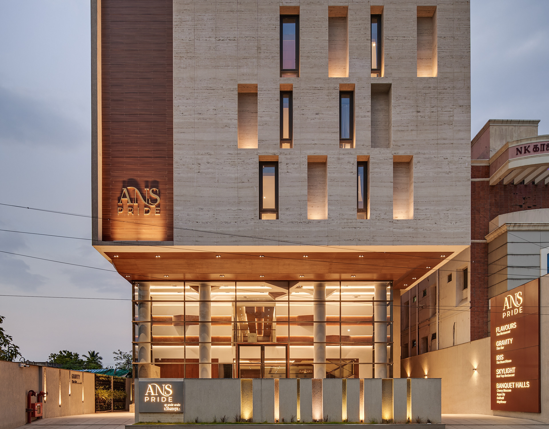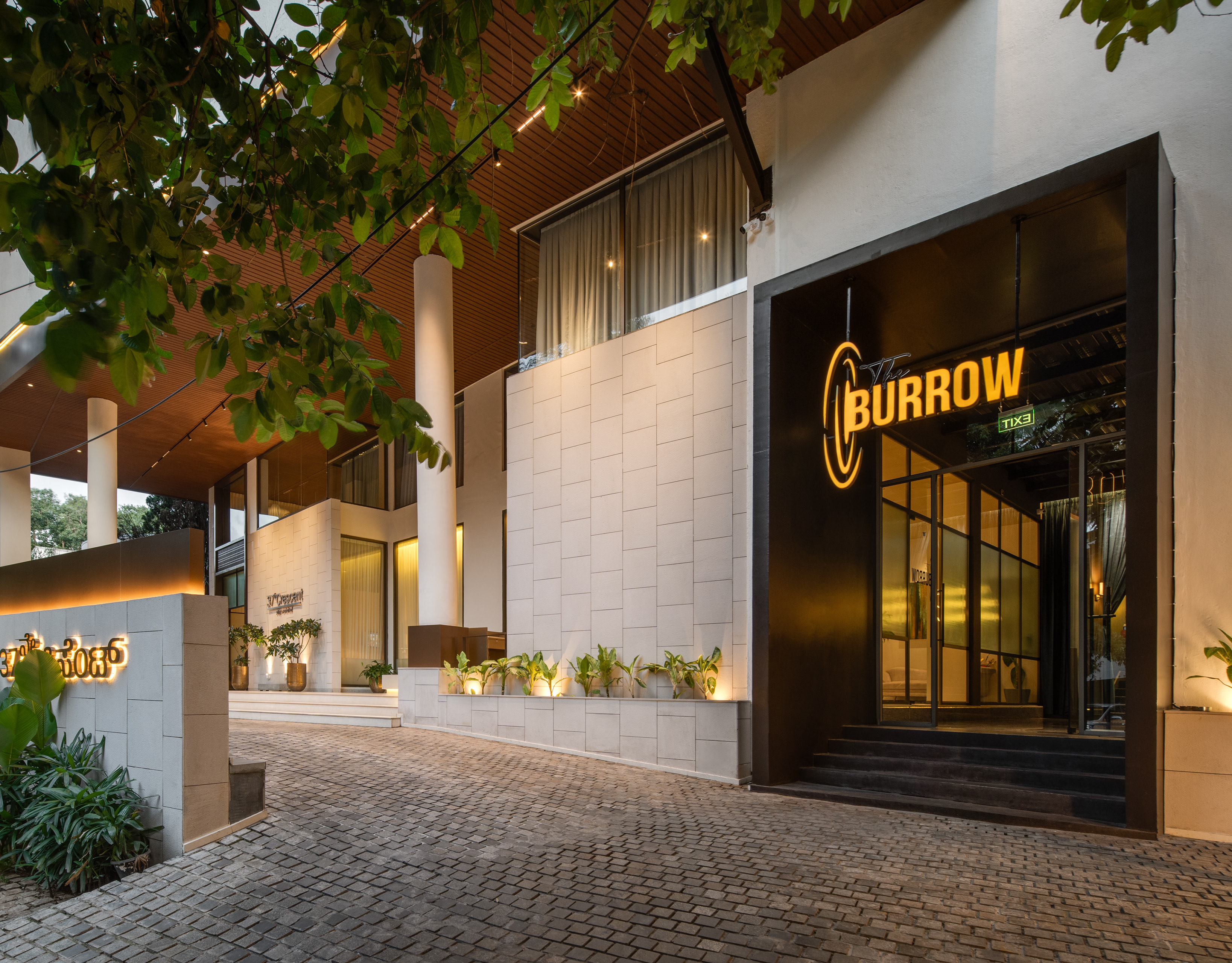 Sunrise is located in the industrial suburb of Bangalore. This project was conceived using affordable materials and parts of an existing building to keep project costs down. We wanted to create a cosy environment for this family-owned business. To achieve this, we chose to use simple, muted materials such as wood and concrete, and added plenty of vegetation.
