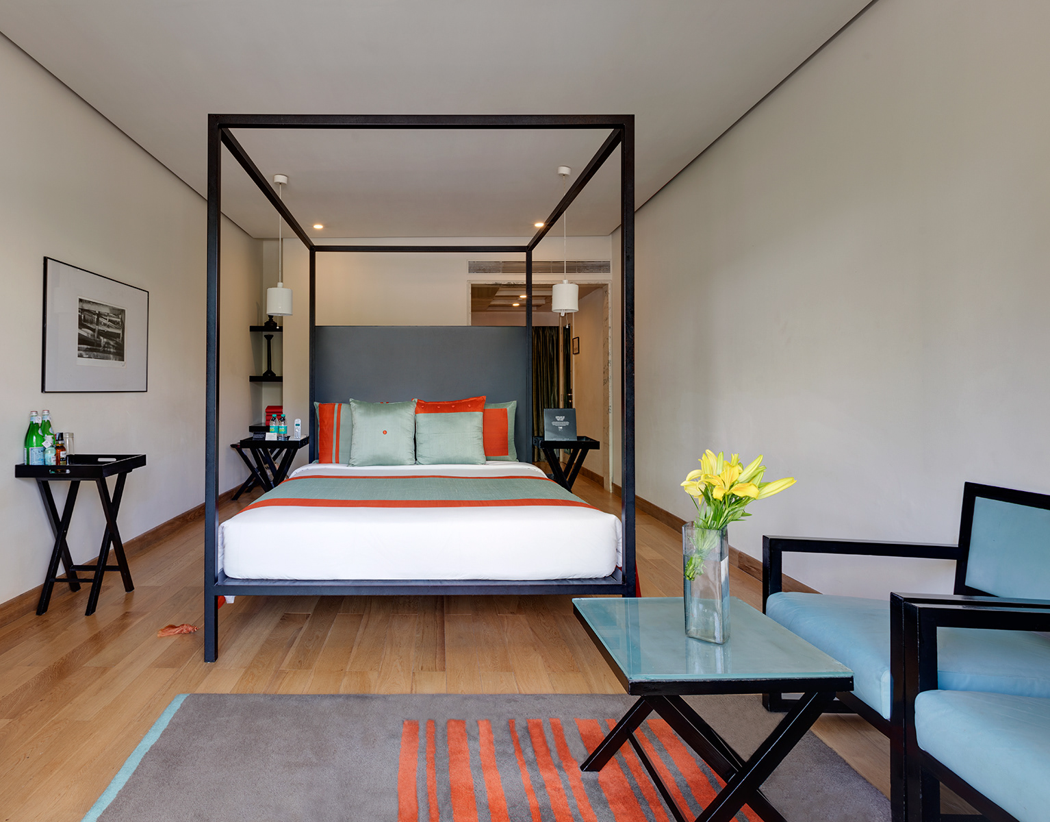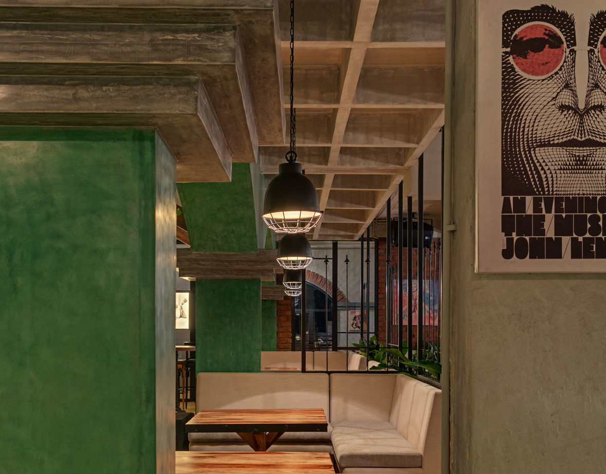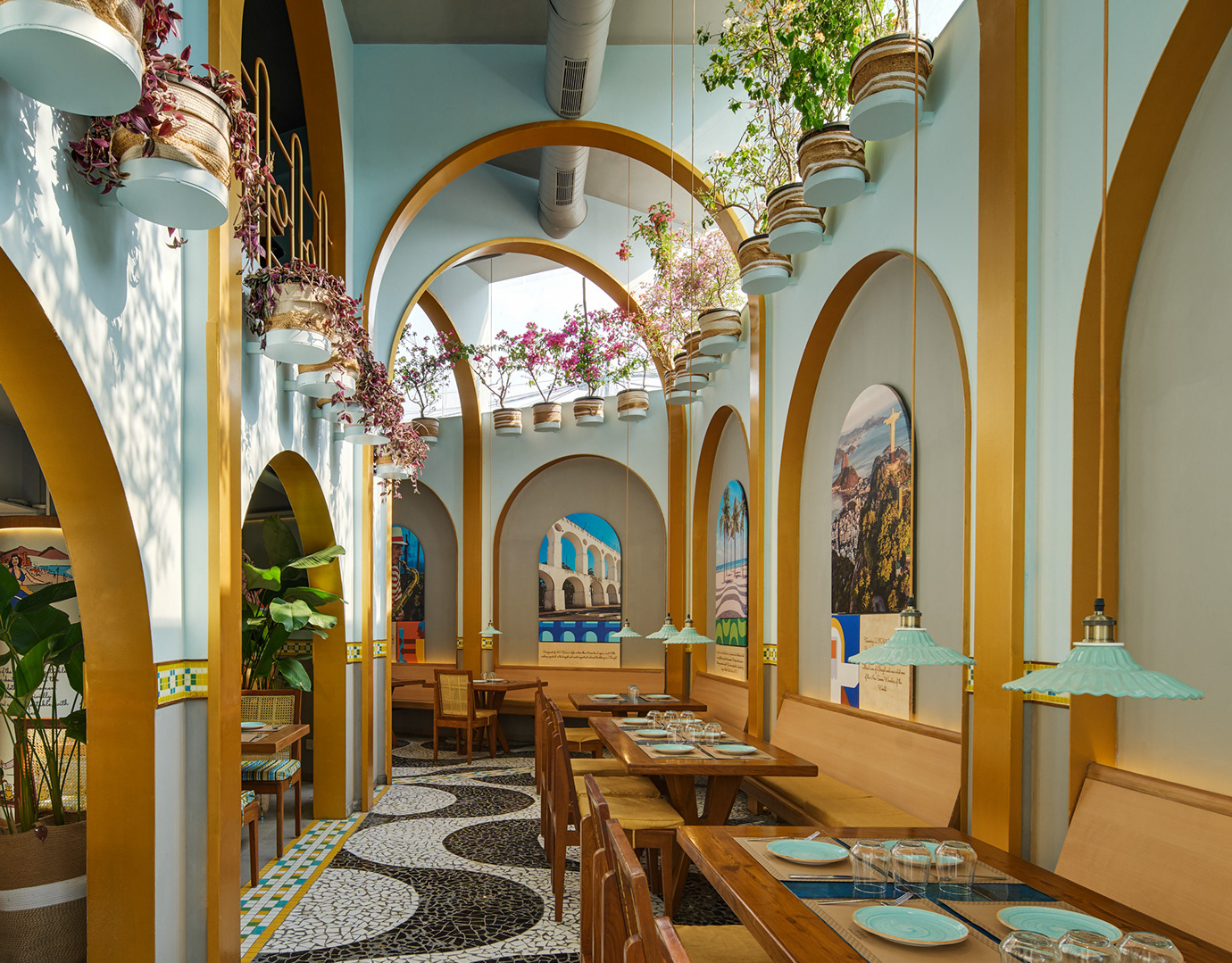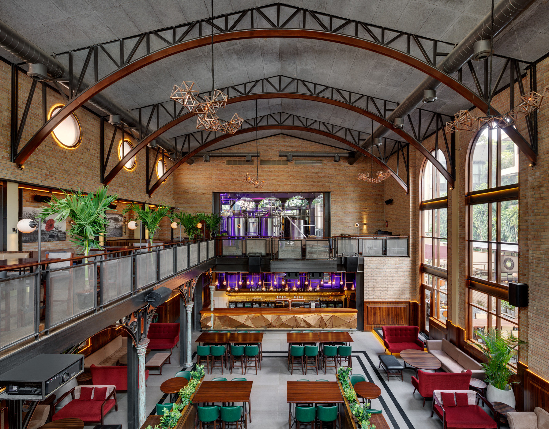 The Jaipur Bar Stock Exchange features Grand arches , classic details and decorations that aids in delivering similar experience. The space celebrates proportions that accentuates the scale of space . The arches adds layer as well as scale, and layer aids in achieving depth. The decoration gives classic attributes whereas accessories and decor gives contextual approach and the color pallet is modern in approach. The space is truly original in its style and is perfectly helmed transitional space that blends multiple styles, achieve contrast and concludes harmony.
