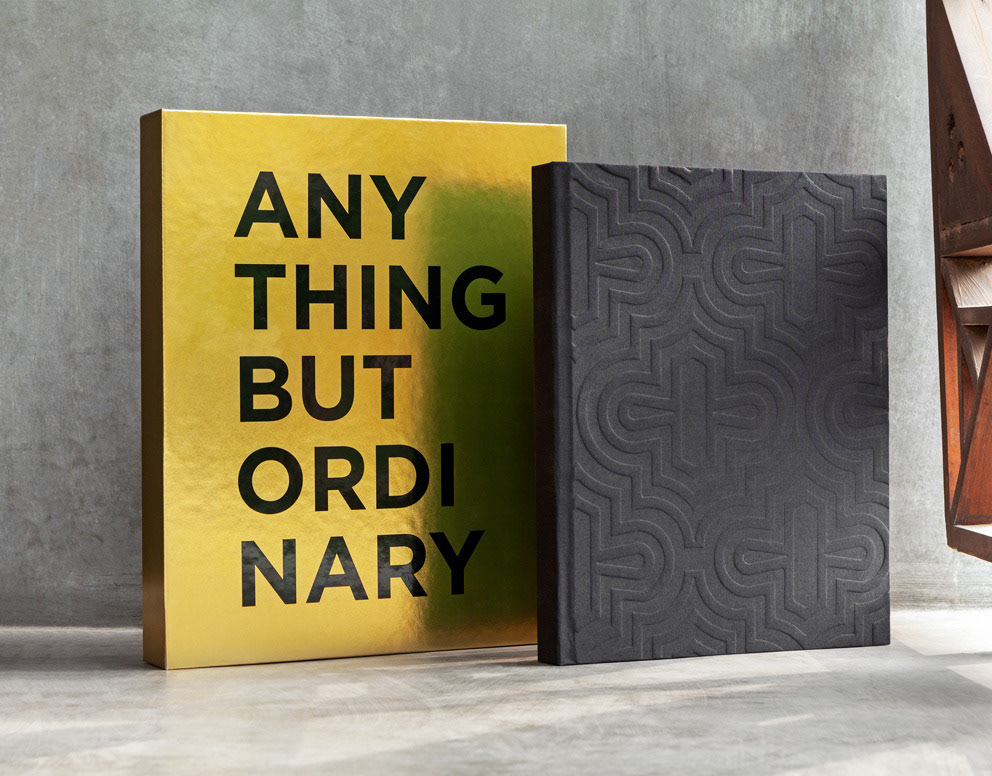 The colour palettes -black on white; white on dark grey; dusky rose, grey and chocolate; and black, blue lagoon, terracotta red and sunshine yellow.