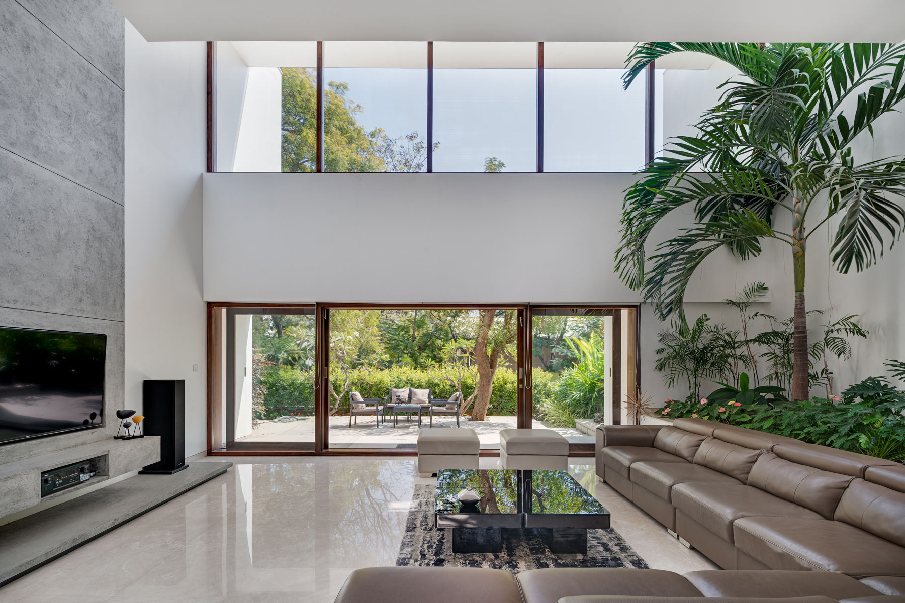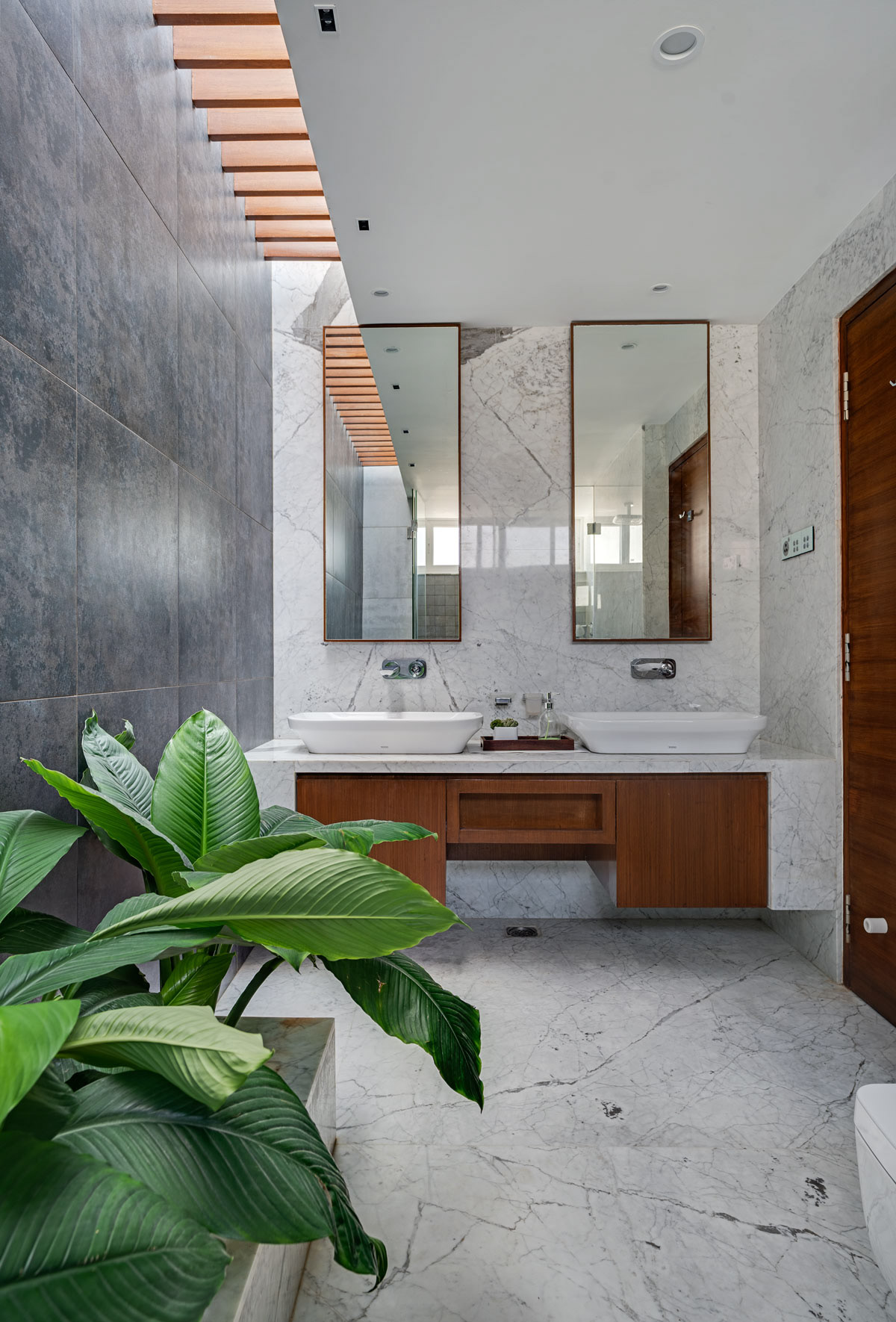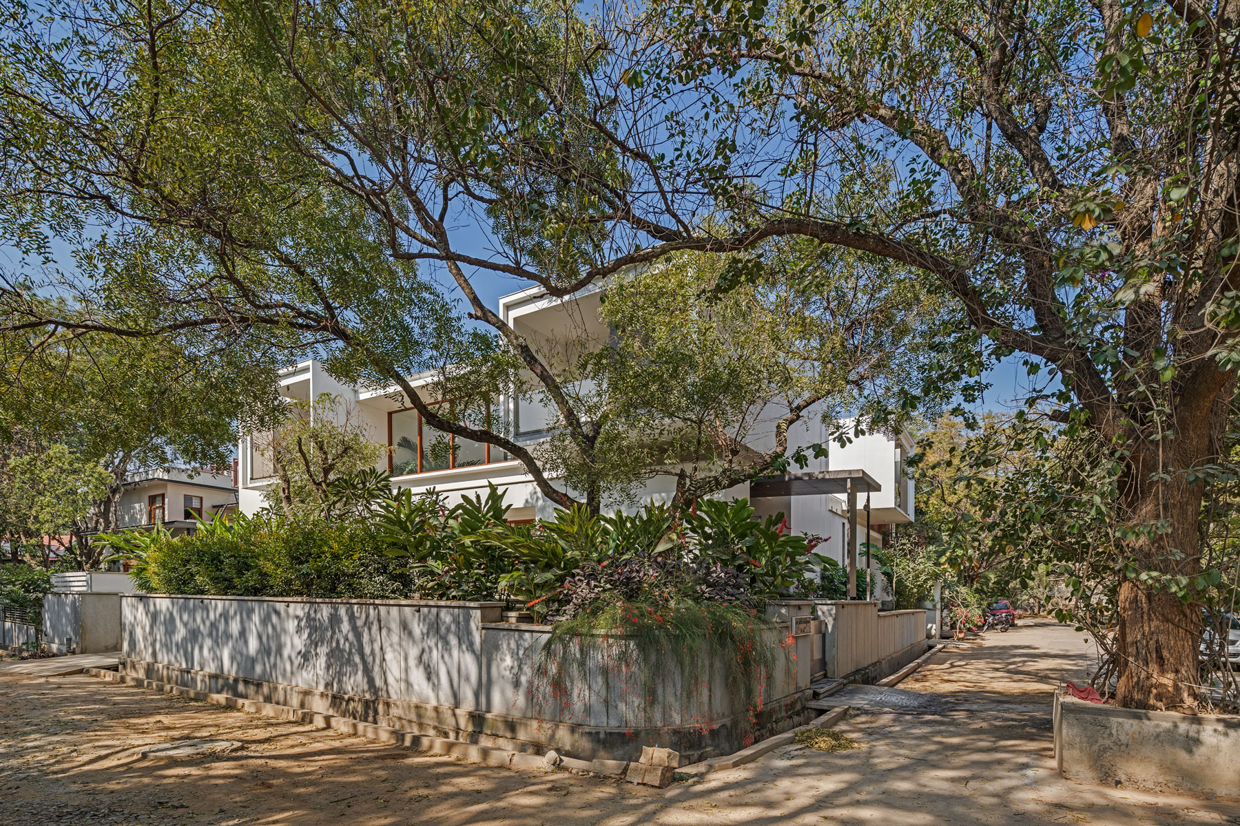A residential project designed by Collage Architects in Bengaluru. The entire house designed with lots of light and shade. The Indoor garden and tree makes the house more tropical.